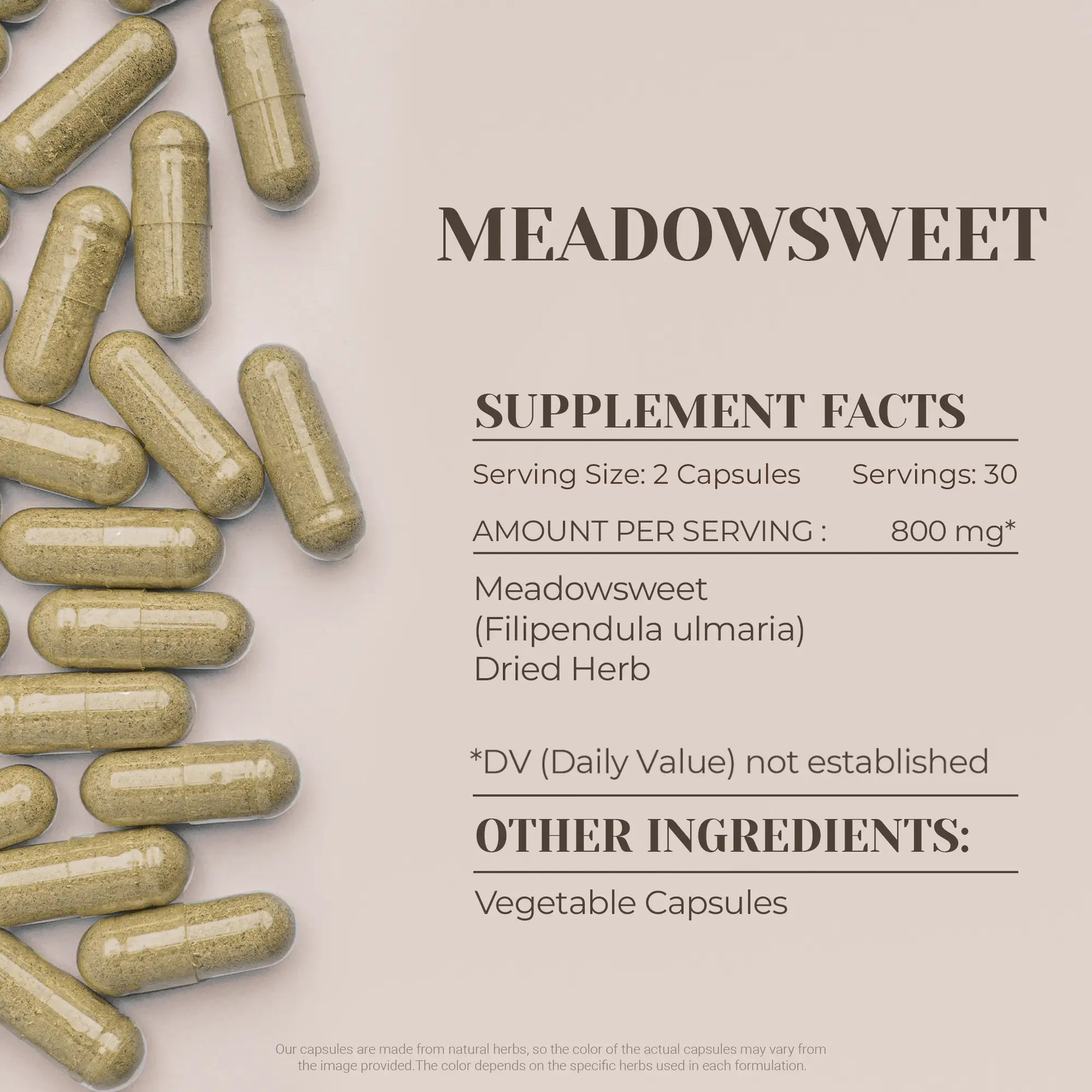 - Non-GMO, vegan, and crafted with responsibly sourced meadowsweet herb.